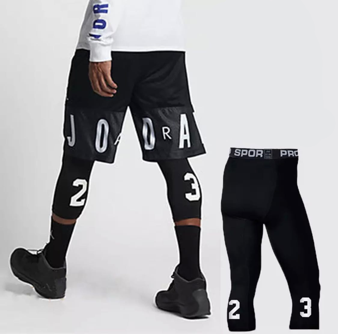 Черные термобельё с номером 23 повышает температурный комфорт. Отводит влагу. Ткань не вбирает влагу и быстро сохнет. Купить баскетбольное термобельё 3/4 недорого, вы можете в интернет-магазине time2win.ru