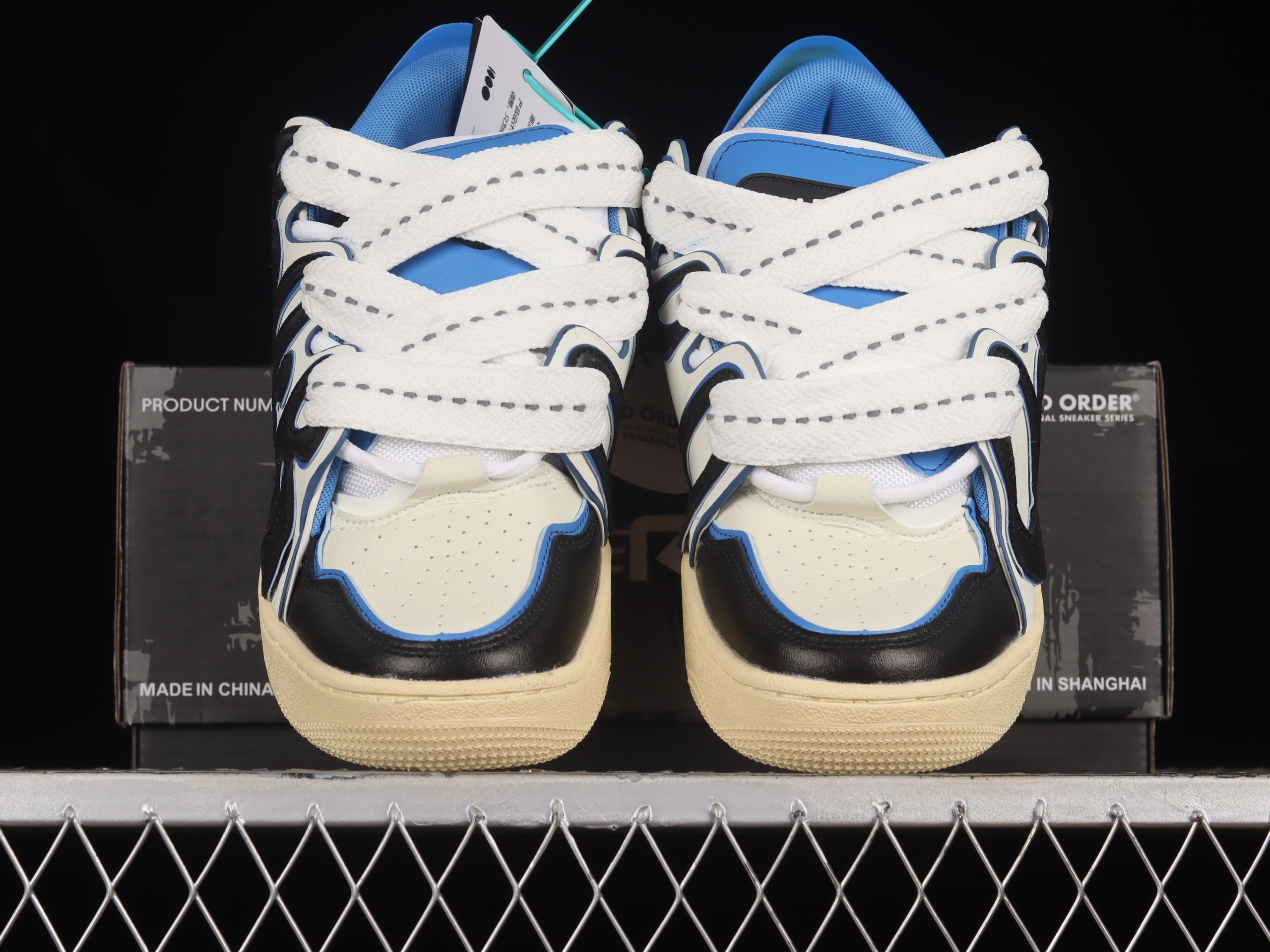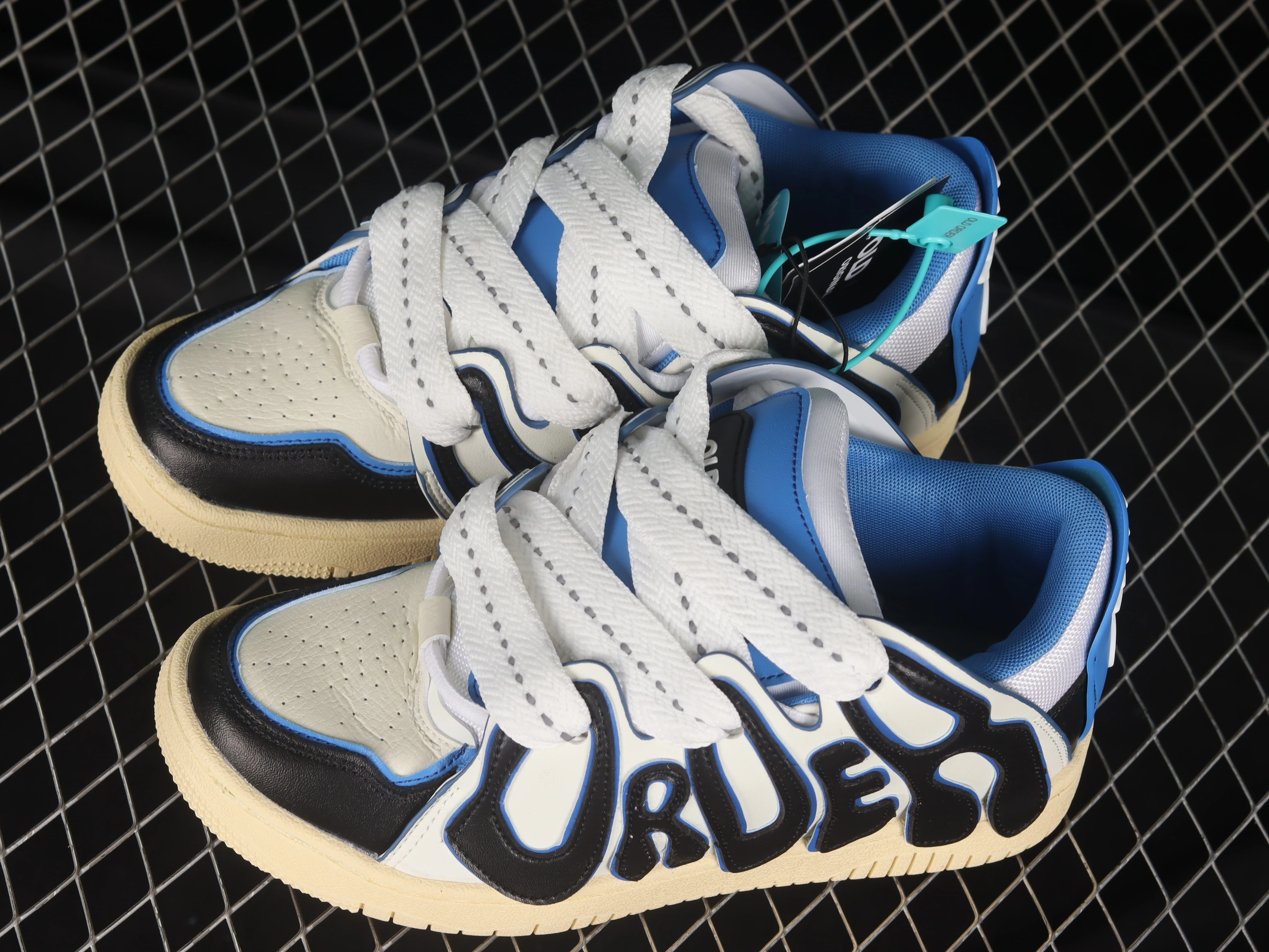 Расцветка Black/White/Blue добавляет силуэту динамики: классическое черно-белое сочетание разбавляется яркими синими акцентами, создавая свежий и дерзкий образ в духе современного стритвира.